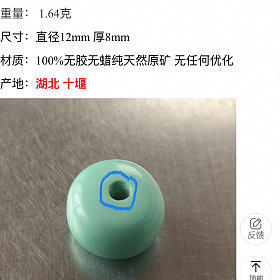 绿色系的,比蓝色系更衬黄黑皮,同价位收了好几颗最后留下的一颗,几乎无铁线,两边孔大小有点不同(已圈出),很小的区别,介意勿扰,400亏出