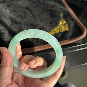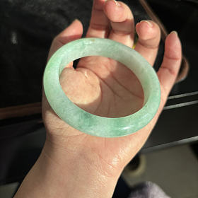天然翡翠淡绿飘彩手镯