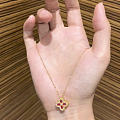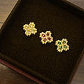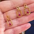 全新全套六福珠宝18K红宝石耳钉项链套装